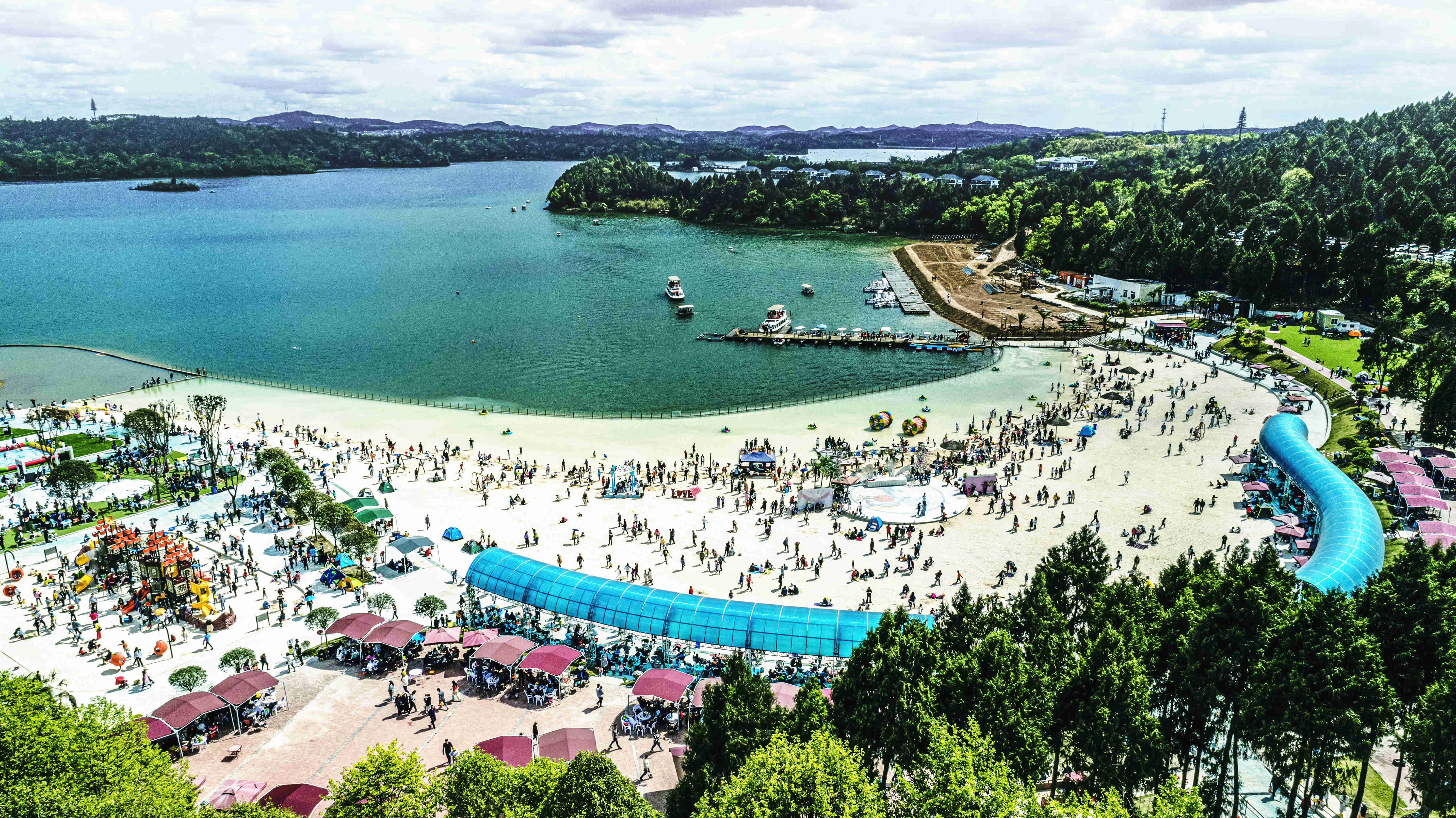 綿陽仙海親水灣沙灘樂園:游客譽為“綿陽馬爾代夫”